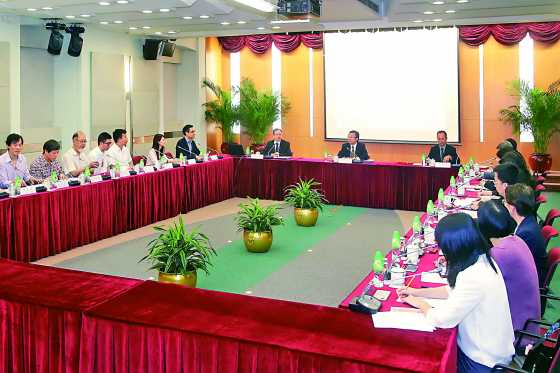 【本報消息】社會文化司司長譚俊榮上月二十六日在政府總部會見街坊總會一行,就愛都酒店及新花園泳池重建規劃交流意見。