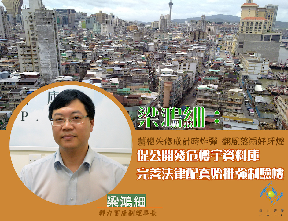 本澳建築物殘危失修問題浮現,石屎剝落、窗戶飛墮等時有發生。本會促請當局盡快公開殘危樓宇資料庫及追蹤系統,有利社會監督及預防,並呼籲推行強制驗樓時,勿操之過急,須完善有關法律制度和相關配套,再考慮加入強制驗樓。