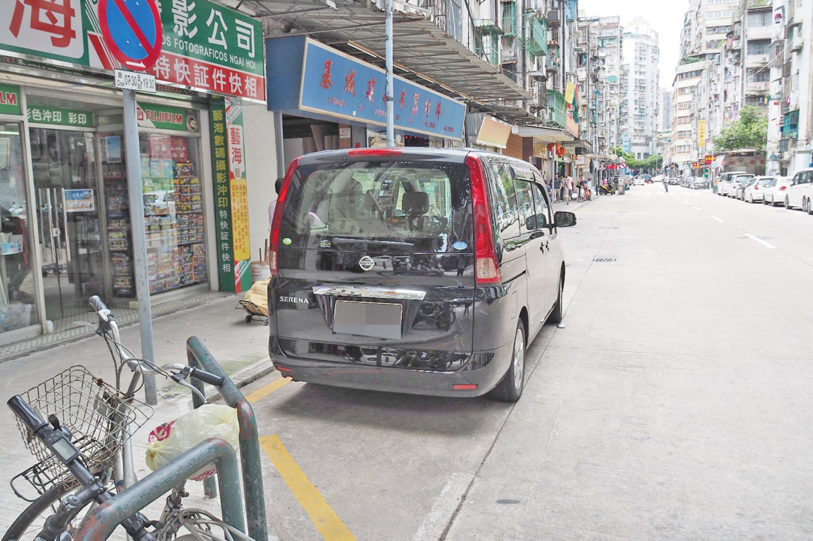 高地烏街近庇道學校一列車位,在修路後全部被取消(圖左)。 (陳宇東攝)