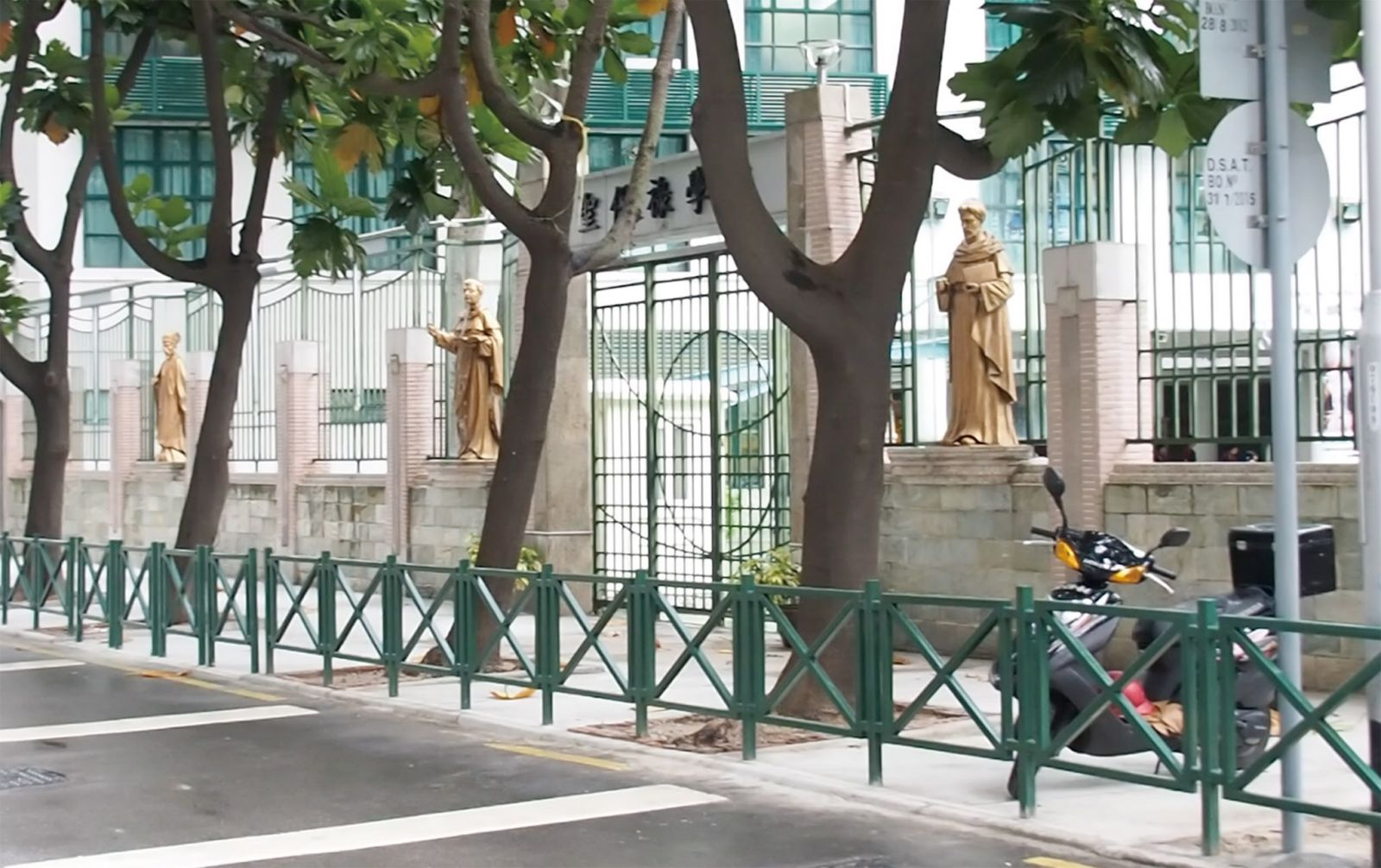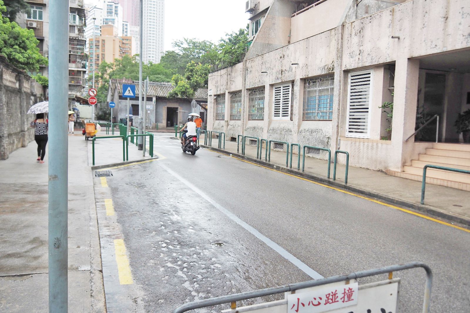 聖保祿學校外,一排電單車位一夜間消失。 (陳宇東攝)
