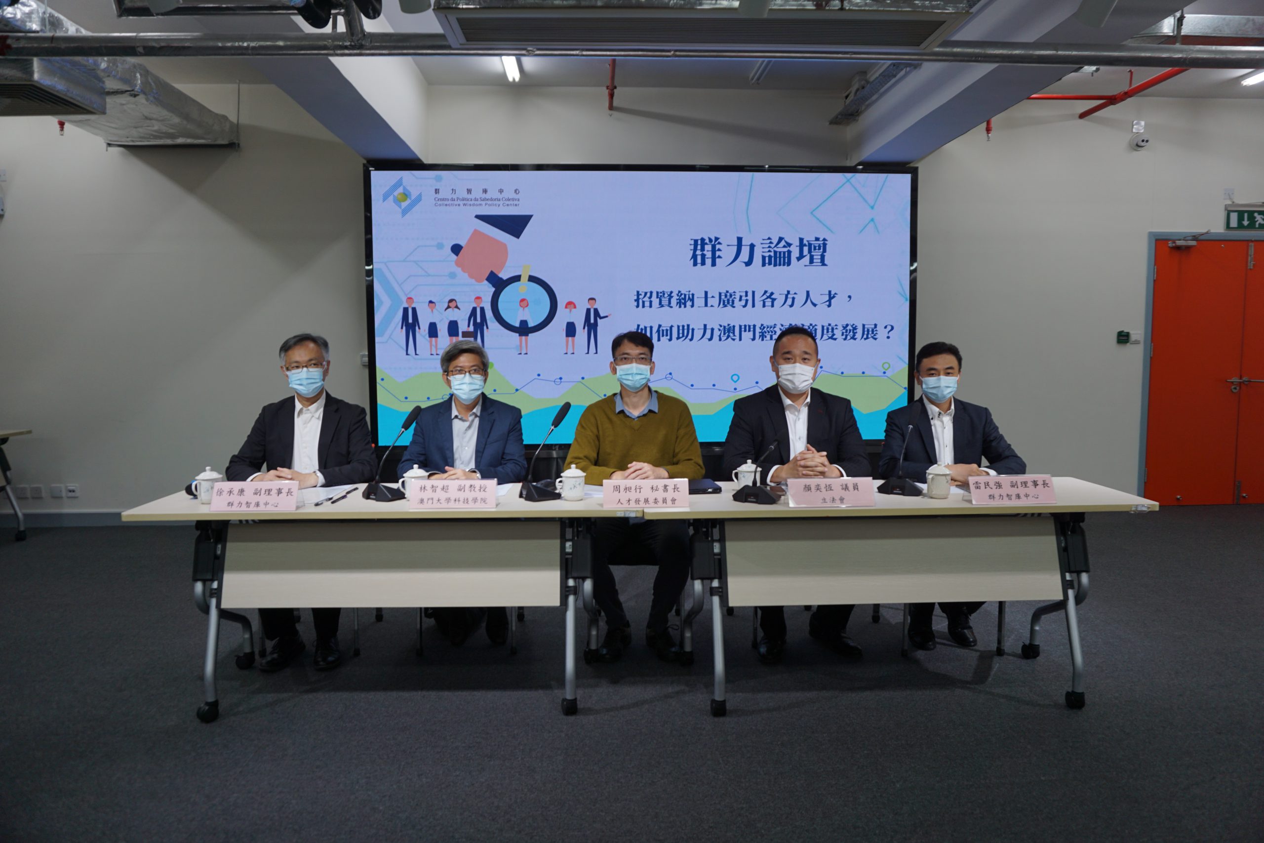 論壇昨日上午11時假澳門網絡媒體舉行,人才發展委員會秘書長周昶行,議員、群力智庫副理事長顏奕恆,群力智庫副理事長雷民強和徐承康、澳大科技學院土木及環境工程系副教授林智超出席。
