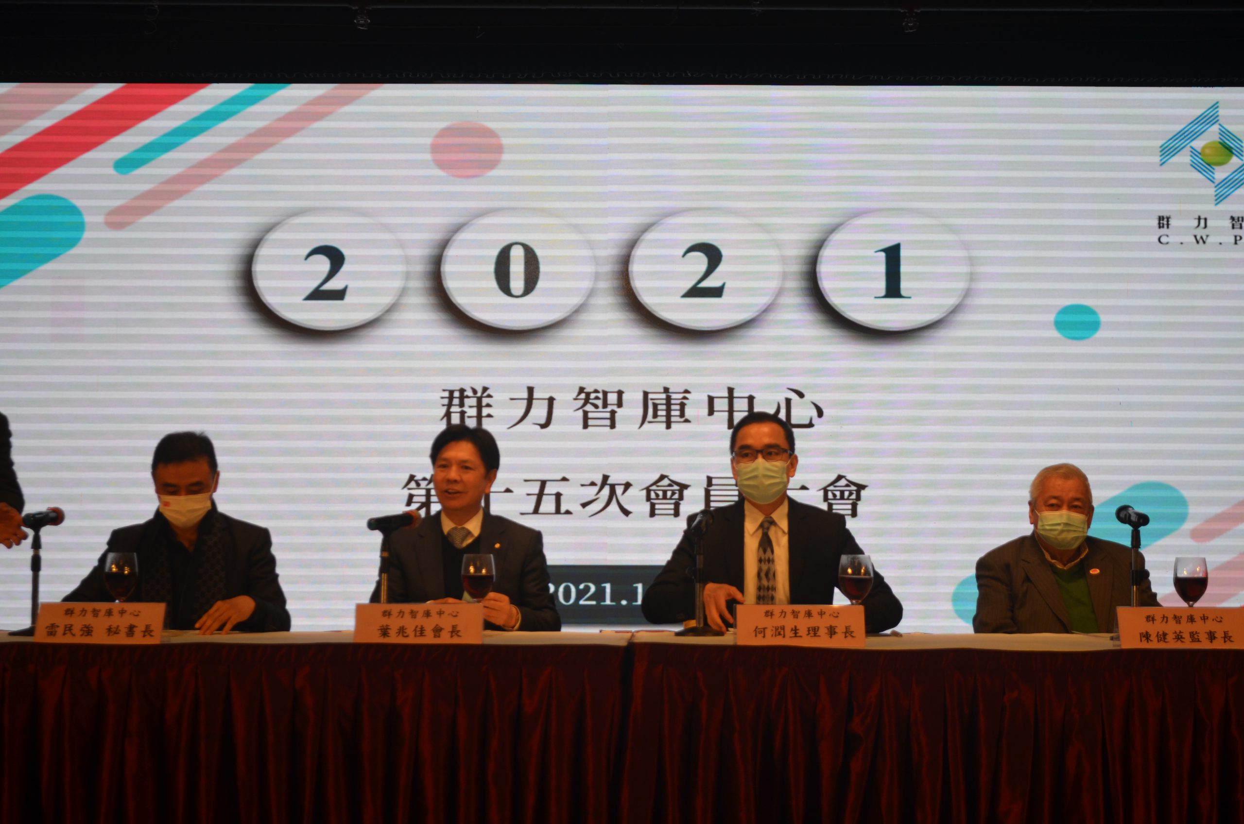 群力智庫12月28日假萬豪軒舉辦第十五次會員大會,由會長葉兆佳主持,理事長何潤生、監事長陳健英、秘書長雷民強分別作2021年會務報告、監事會報告及財務報告,向全體會員及理監事報告本年工作成果,並對來年的工作提出建議發展方向。