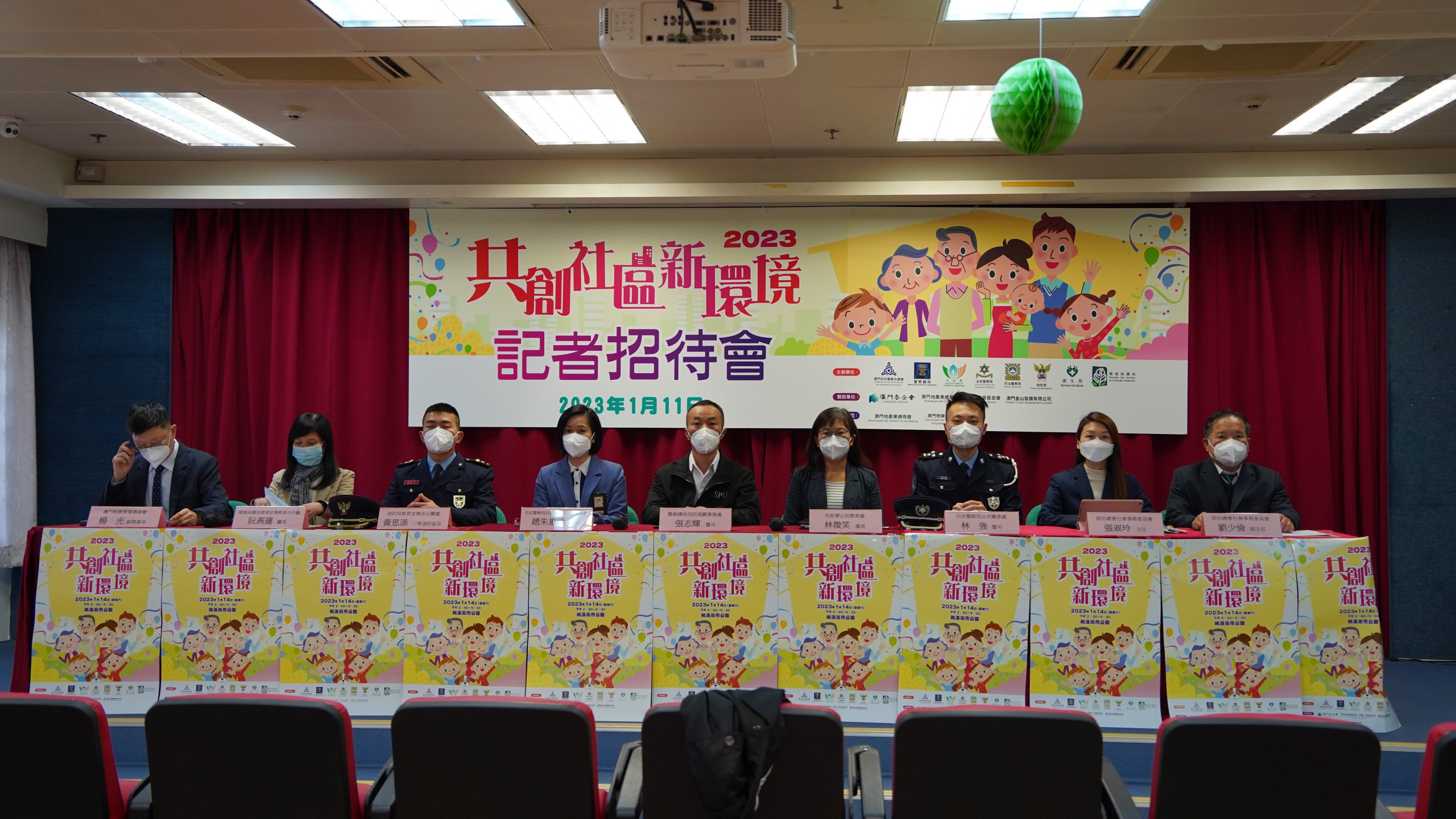 街總及多個合辦活動的政府部門於昨日下午3時在街總社區服務大樓2樓205室聯合舉行記者招待會,街總副理事長兼社會事務委員會主任張淑玲、助理秘書長兼社會事務委員會副主任劉少倫,警察總局民防規劃事務處警司張志輝,市政署公民教育處處長林微笑,治安警察局公共關係處警司林強,司法警察局社區警務及公共關係處處長趙朱惠敏,消防局教育宣傳及公關處一等消防區長黃思添,環保局環境宣傳教育合作廳廳長阮燕蓮以及澳門物業管理業商會副理事長楊光等嘉賓出席主持,共同介紹活動詳情。